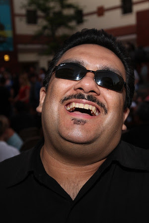 (mascot which gave Joey and I a good laugh). What most impressed me about Camacho is his stint in the Tejano music scene. While I was growing up in San Antone, Camacho was touring with (G)Ram Herrera and even hit the stage and Texas television appearing on the Johnny Canales Show. "Take it away! You got it!" I probably watched him on there not knowing I'd meet him one day. Its always great fun talking Tejano music with Rene. Being from Tucson, he reminds me of a great trip my family took there in the late 80s to the mariachi festival with our student mariachi group. We were the first out-of-state mariachi group to participate and met many wonderful people who are now long lost with the passing of time. Talking with him about how much the Tucson festival has grown over the years puts a smile on my face--- and that's just how Rene is. He lightens the mood and makes you laugh. You want to crack jokes around him just to hear that great Haaaaaa-hahahahaha come out of him. That's how Abel (photographer, see his link on the left) and I got that picture above. *smirk* So take a peek at the link below for some fun Camacho facts. Next time you go out on the town or to your local festival, keep an eye out for Rene. He not only has mad skills, he has toured with everyone and their mother. He's currently giging with Kevin Eubanks and once took a call from "Linda" of Rondstandt fame in my very own house. I was doing the silent OMG-face the entire time. He just takes it all in stride and that's what so great about him. Always laughing, telling great stories, and an all around good guy. Yeah, I said it.